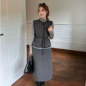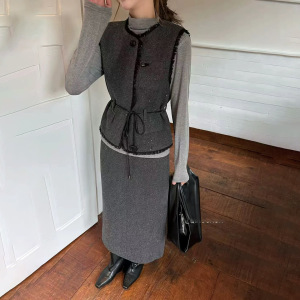 小香风套装裙女2025秋冬新款气质毛边马甲时尚洋气减龄显瘦三件套