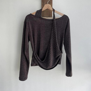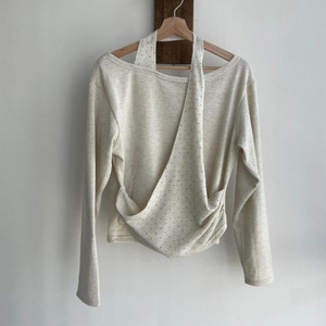 法式设计感小众别致气质长袖T恤女装宽松韩系氛围感露肩针织上衣