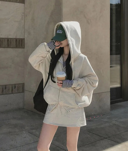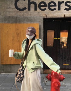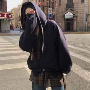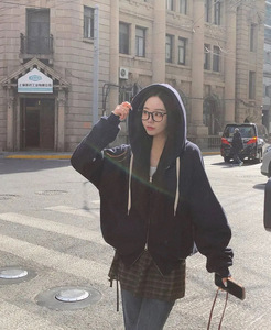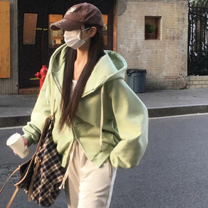 韩系简约街头风通勤百搭长袖连帽拉链宽松卫衣外套女宽松休闲上衣