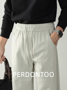【绵柔空气层】明线拼接设计微阔休闲裤男松紧腰垂感纯色运动长裤