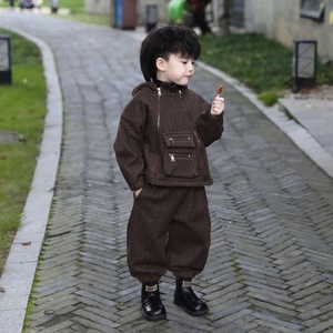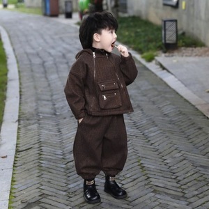 男童套装2025秋冬新款中小童加绒设计感双拉链高级外套长裤两件套