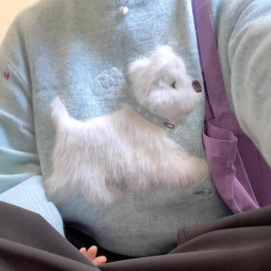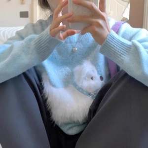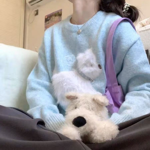 2025秋冬新款韩系休闲百搭毛绒小狗圆领打底毛衣卡通提花针织衫女