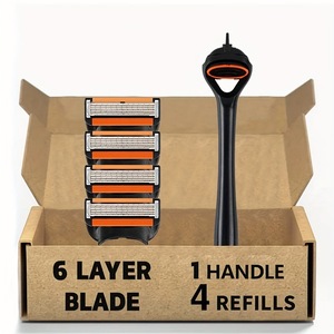 新款六层手动剃须刀可水洗多层不锈钢刀片耐用刮胡刀复古组合套装