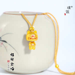 璞佐金店同款沙金diy配件躲猫猫吊坠项链可爱套头招财金喵锁骨链