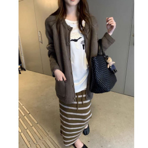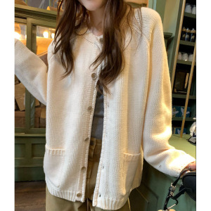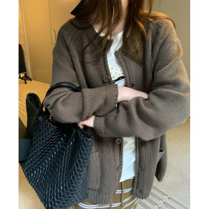 白巧布朗尼~混纺粗针中长款针织开衫宽松慵懒感毛衣外套2025秋季