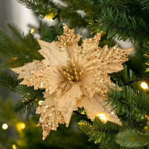 跨境亮片花仿真花圣诞花网纱布艺插花装饰摆件绒布圣诞节装饰品厂