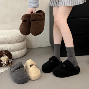 厚底勃肯鞋女毛毛鞋2025秋季秋冬新款加绒女鞋子日系复古包头半拖