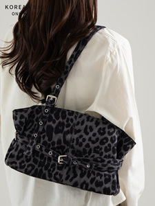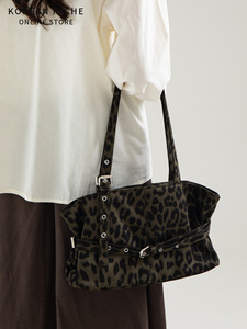 早秋新款小众豹纹设计麂皮绒托特包大容量复古百搭通勤手提单肩包