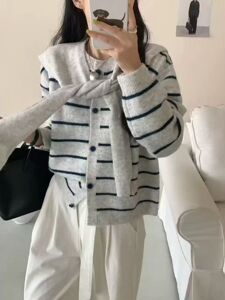2025年秋冬季新款韩版宽松显瘦圆领单排扣针织开衫女披肩毛衣外套
