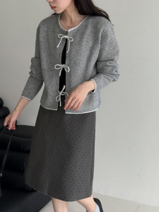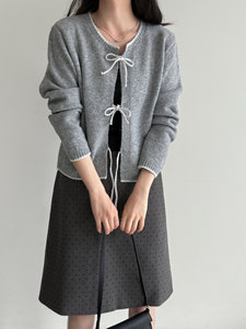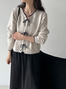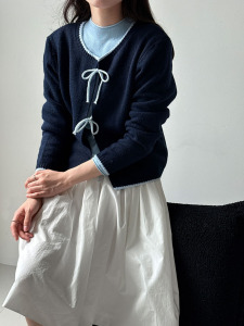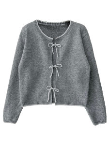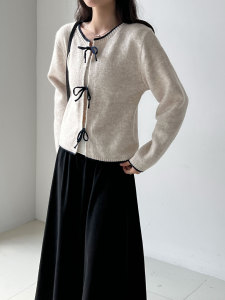 鹿西 软糯圆领系带毛衣甜美短款上衣女秋季气质设计感开衫ss826