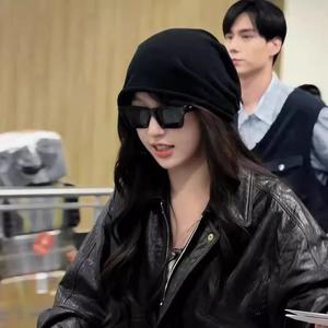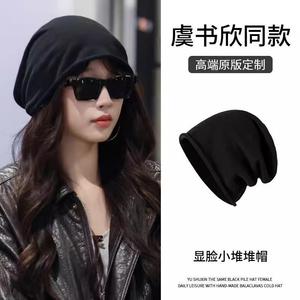 虞书欣同款黑色冷帽包头帽女春秋薄款帽子百搭大头围显脸小堆堆帽
