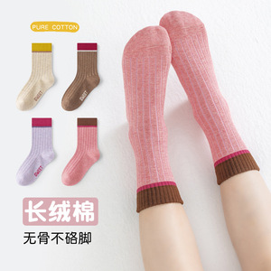 女童袜子秋冬新款拼色罗口中筒棉袜可爱宝宝女孩纯色无骨儿童袜子