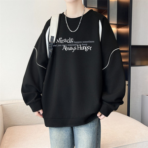 春秋季新款长袖衬衫领卫衣男初中高中学生青少年帅气大童男装恤