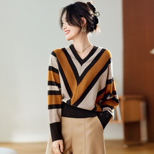 高级感蝙蝠袖毛衣针织衫女春秋2025新款条纹遮肚子洋气减龄上衣潮