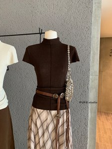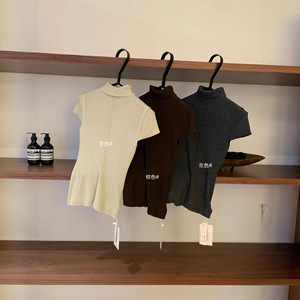 WGWE 7278广州十三行女装秋装新款小个子高领短袖针织衫打底上衣