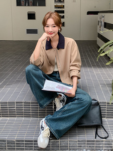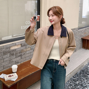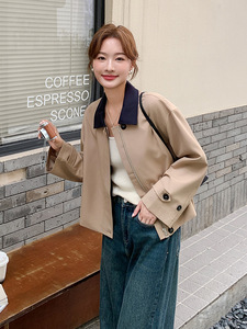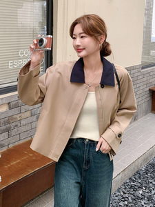 韩系休闲显瘦撞色翻领短外套女春秋2025新款小个子流行爆款巨好看