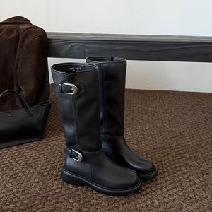 MARCO&JOYCE时尚长筒骑士靴新款粗跟圆头拼接西部靴褶皱堆堆靴女