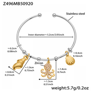鑫艺鑫海洋风新款饰品不锈钢5A锆石八爪鱼海螺DIY多配件吊坠手镯