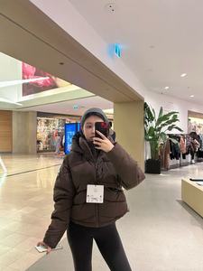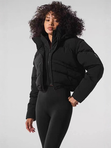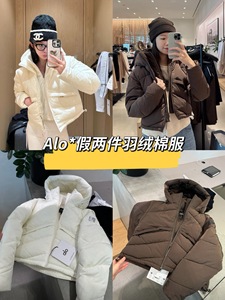 alo25冬季假两件立领连帽短款时尚百搭型高密度防风面料羽绒服
