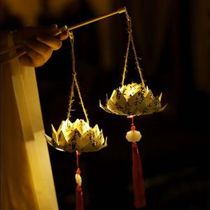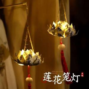 中秋节灯笼手工diy荷花灯制作材料包儿童手提发光古风纸质莲花灯