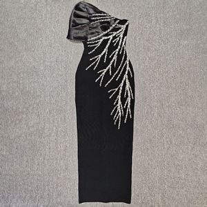 欧美跨境新款绷带裙手工钉钻优雅露肩名媛气质女装连衣裙派对礼服