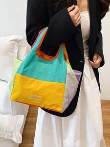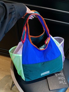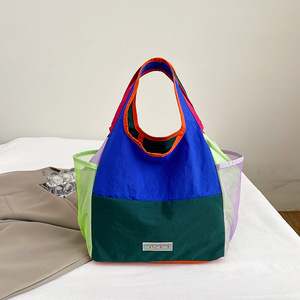 彩色拼接多巴胺折叠购物袋包包2025新款轻便休闲尼龙布手提单肩包