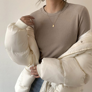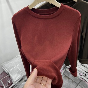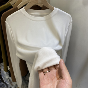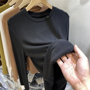 圆领长袖恤女装冬季加厚显瘦内搭纯色上衣磨毛加绒德绒打底衫