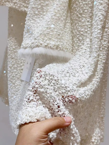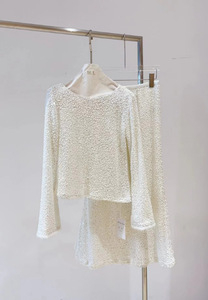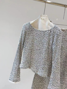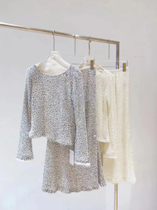 南油高端女装秋冬新款法式小香风毛绒感亮片长袖上衣+鱼尾裙套装