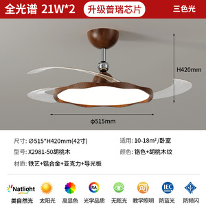 普瑞全光谱-X2971-42寸吸顶胡桃木色+铬色