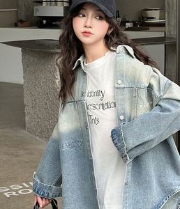 女童牛仔衬衫2025年秋季新款中大童渐变长袖上衣开衫春秋童装外套