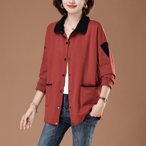 中老年女装长袖上衣2025新款翻领卫衣女大码中年妈妈春秋开衫外套