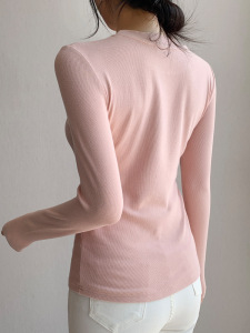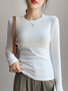 粉色长袖恤女2025春秋新款圆领螺纹修身内搭打底衫百搭上衣秋冬
