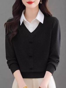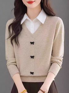 假两件撞色毛衣女春秋冬衬衫领洋气针织打底衫