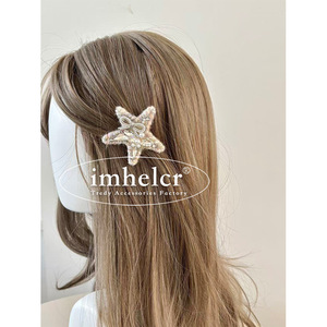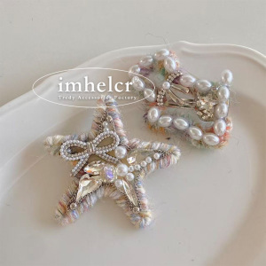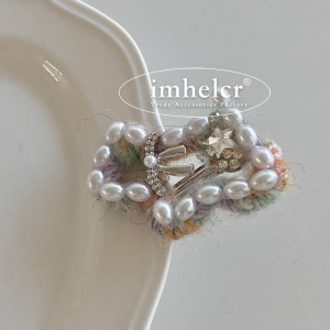 ins精致彩色毛线五角星发夹甜美趣味珍珠水钻小狗鸭嘴夹边夹新款