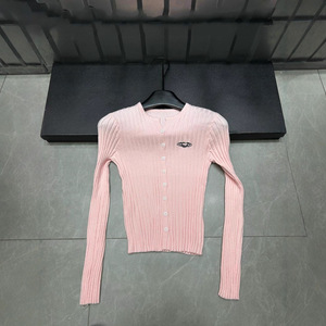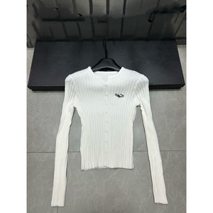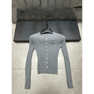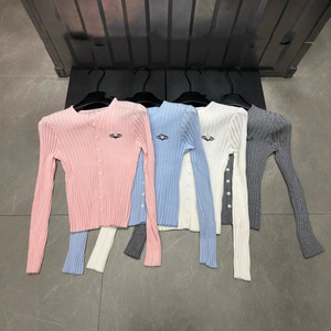 2025秋冬新款星刺绣坑条圆领单排扣针织开衫长袖修身显瘦百搭上衣