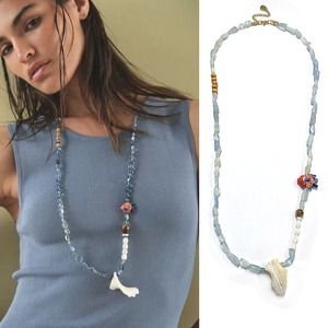 欧美ins海蓝宝天然石串珠项链女 简约长百搭个性毛衣链锁骨链跨境