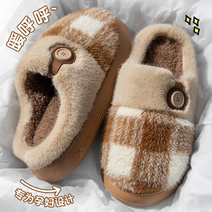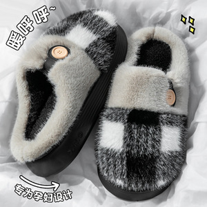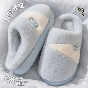 孕妇月子棉拖鞋女款2025新款秋冬季室内家居厚底加绒保暖情侣棉鞋