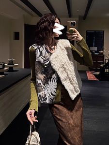 新中式秋季复古提花割绒拼接毛毛大马甲女国风高级无袖背心 N9067