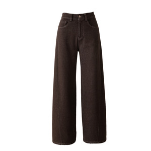 鑫阁美拉德咖色加绒牛仔裤女冬季薄绒2025新款复古宽松阔腿直筒裤