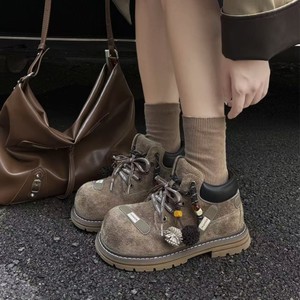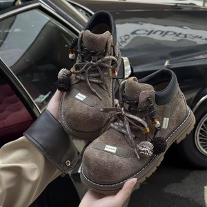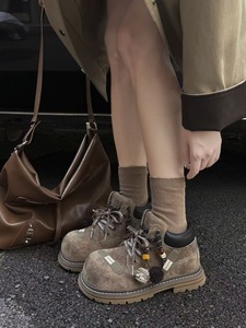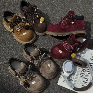 欧货2025新款磨砂真皮系带流苏大头丑萌工装马丁靴机车靴短靴女鞋