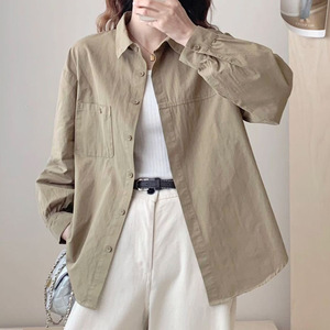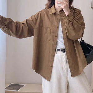日韩春秋百搭休闲宽松显瘦长袖纯色中长款衬衫外套女上衣衬衣