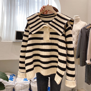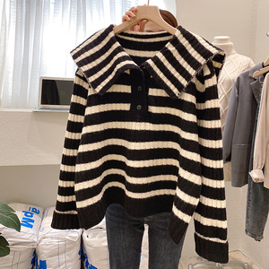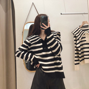 海军领短款上衣慵懒风毛衣外套女秋季2025年新款秋季条纹针织衫
