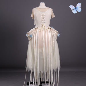 万圣节跨境星期三新款cos服依妮德杏色礼服裙儿童成人尺码cosplay