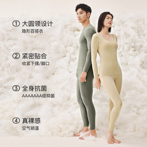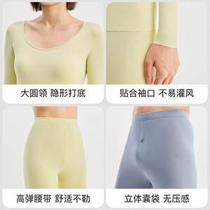80兰精莫代尔情侣保暖内衣女圆领修身男士秋衣秋裤套装无痕保暖衣