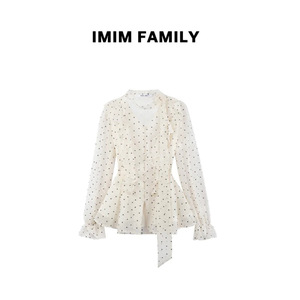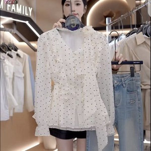 “洛克少女”秋季新款法式波点围脖系带轻职风气质修身长袖衬衫女