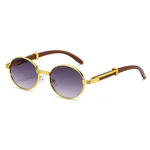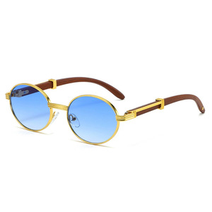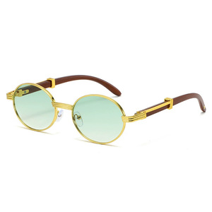 2025新款墨镜女式椭圆框复古木纹镜腿欧美太阳镜男士休闲时尚眼镜