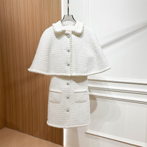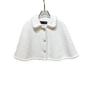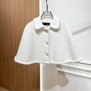 2025新款小香风名媛可爱娃娃翻领白月光针织短款粗花呢斗篷上衣女