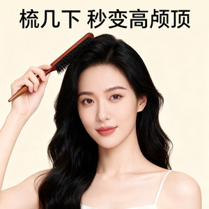 天然猪鬃按摩梳防静电顺发宽齿密齿护发不打结蓬松造型尖尾木梳