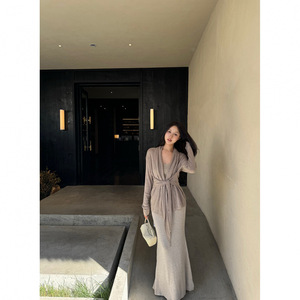 昕可达 慵懒风绑带设计羊毛开衫女秋季高级感中长款气质外套