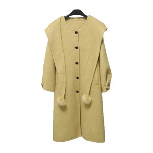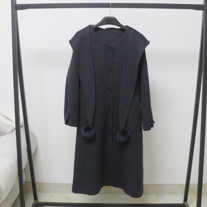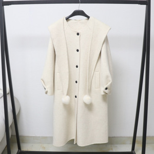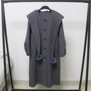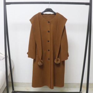欧洲站2025秋冬新款女装圆领搭围巾帽长款韩版双面呢羊毛大衣